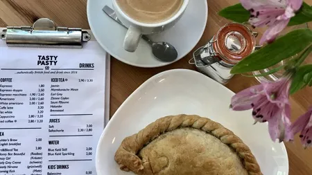 Spezialitäten aus Südengland und ausgezeichnetes britisches Frühstück bekommt ihr im Tasty Pasty auf dem Schillplatz in Nippes. Wer's herzhaft mag, dem empfehlen wir die original Cornish Pasties – gefüllt mit allem, was das Herz begehrt: Käse, Gemüse oder Fleisch. Freund*innen des süßen Frühstücks werden ebenfalls fündig, denn neben Brownies, Shortbread und Kuchen gibt es im Tasty Pasty auch noch unglaublich leckere Scones, die ihr wahlweise einzeln oder als Cream Tea mit Konfitüre, Clotted Cream und English Breakfast Tea bestellen könnt. Very british and very delicious indeed!