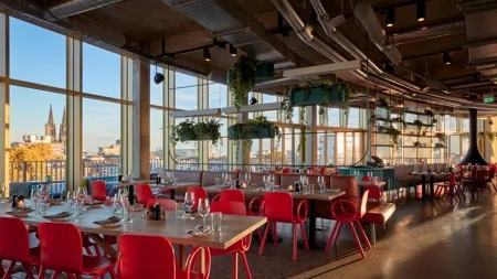 Im achten Stock des 25hours Hotel The Circle kommen nicht nur Touris, sondern auch Kölner*innen auf ihre Kosten. Zu finden ist dort nämlich das NENI Restaurant, in dem ihr bei leckeren israelisch inspirierten Mezze wie gegrillter Aubergine und Hummus die atemberaubende Aussicht über die Stadt genießen könnt. Wer auch nach dem Essen nicht genug bekommen kann von diesem tollen Ort, wechselt einfach in die Monkey Bar direkt nebenan. Neben klassischen Longdrinks und Cocktails bekommt ihr dort auch Neuinterpretationen traditioneller Highballs und Drinks.