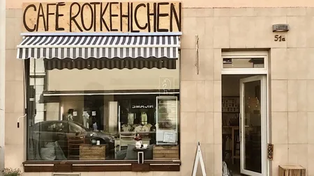 Das Café Rotkehlchen gibt's inzwischen in vier Kölner Veedeln – so auch in Bayenthal. Und auch da geht's super-gemütlich zu: Dunkle Holzmöbel, Blümchen und ein Sitzbrett vor der Tür sorgen für die gewohnte Wohlfühlatmosphäre. Auch was das Essen angeht, dürfen sich Gäste auf beliebte Rotkehlchen-Renner wie Ciabatta, Foccacia, Quiche, Salate, Kuchen und wechselnde Tagesgerichte freuen. Das Rotkehlchen in Bayenthal hat eine etwas kleinere Früchstücksauswahl als die anderen Filialen, dafür aber ein umso größeres Mittagsangebot.