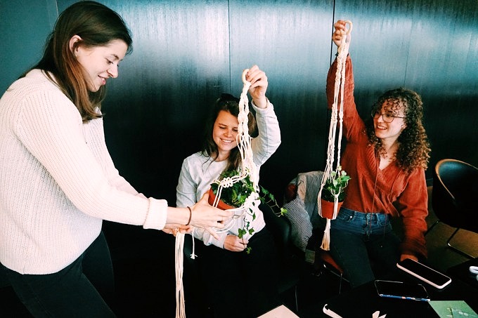 Das Beste: Das Team von PlantNight stellt dir das Material und legt es so bereit, dass du direkt loslegen kannst. Als Spickzettel gibt's eine Anleitung mit Fotos, aber keine Sorge – die einzelnen Knoten erklärt dir das PlantNight-Team auch noch mal vor Ort. Die Gruppen sind außerdem so überschaubar, dass du immer nachfragen kannst, wenn du dich mal verknotet hast. Du kannst mit deinen Freunden dorthin, alleine macht das Knüpfen aber genauso viel Spaß.