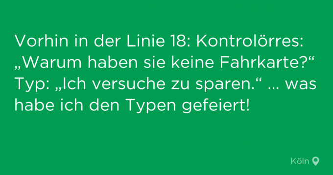 Man könnte meinen, den Jodler*innen ist diese Woche die Hitze zu Kopf gestiegen: Während die einen vom Balkon aus so laut einen fahren lassen, dass die Nachbar*innen applaudieren, planen die anderen ihre Hitze-tauglichen KVB-Outfits à la Badeanzug und Maske. Und dann wären da noch grauenvolle Date-Erfahrungen, die man wirklich niemandem wünscht. Viel Spaß bei unserer wöchentlichen Jodel-Rückschau: