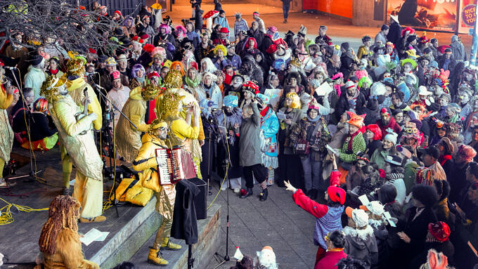 Auf dem Ebertplatz laden am Sonntag der Singende Holunder, De Neppesser Stääne und Et Thekenterzett zum gemeinsamen Singen ein – damit ihr textsicher und gut eingestimmt in den Rosenmontag startet. Los geht's um 17.30 Uhr, der Eintritt ist frei.